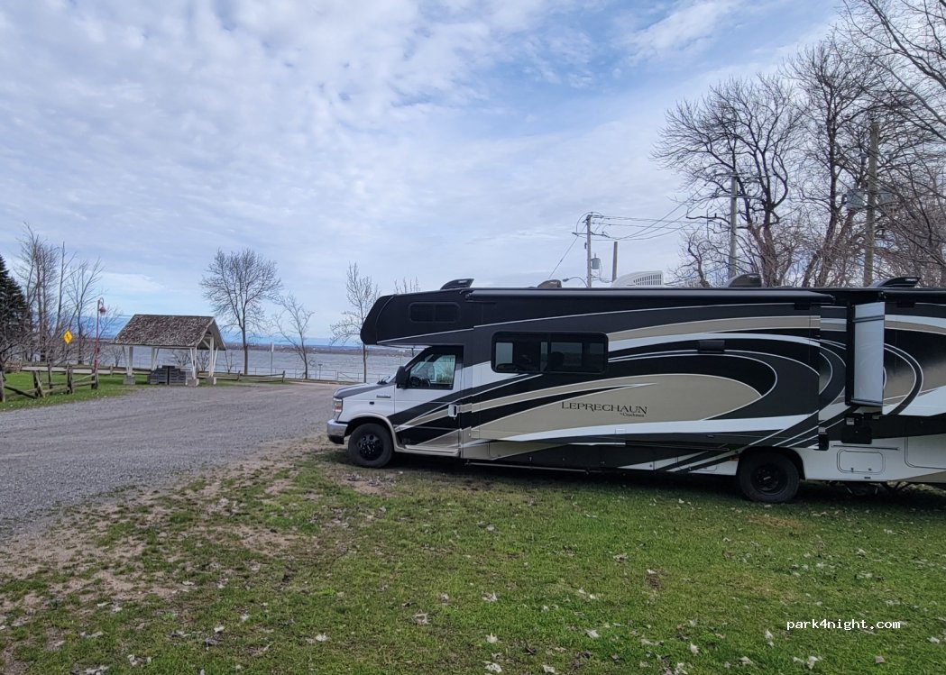 nous y avons passé la nuit du 29, très calme avec l'aire de pique-nique en face, vue sur le st Laurent. toilettes disponibles. don 20$