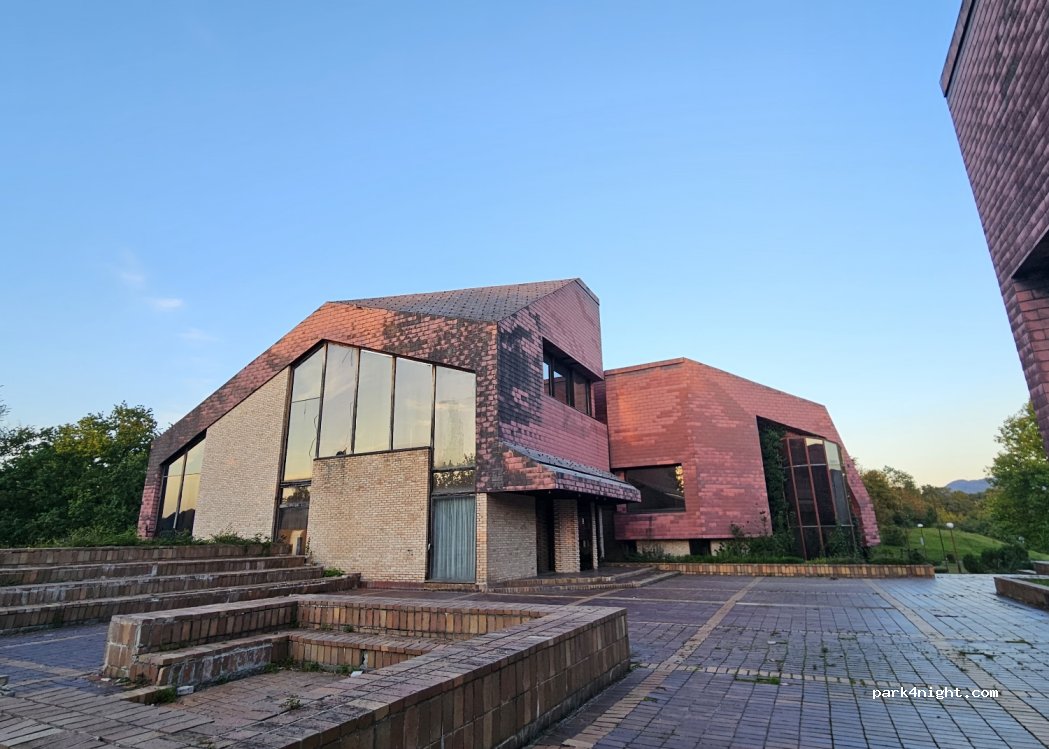 Parking area of the abandoned cultural centre dedicated to "Tito" previous leader of Yugoslavia.