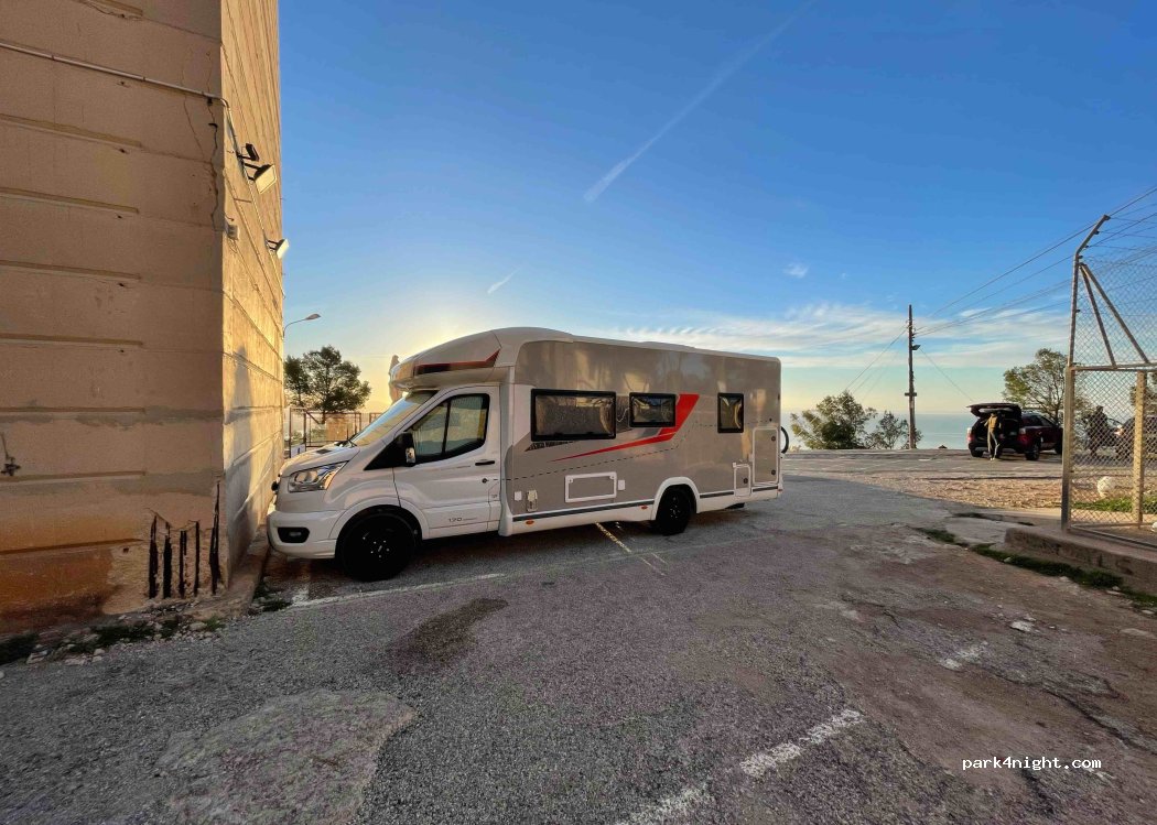 Mirador con vistas privilegiadas de Palma y el puerto. Bastante tranquilo a partir de las 1:00 - 2:00 ya que antes suelen venir coches para contemplar el atardecer y estar con amigos (sobre todo los viernes y los sábados), pero a partir de las 2:00 suele estar bastante tranquilo. Pasamos una noche aquí muy tranquila.