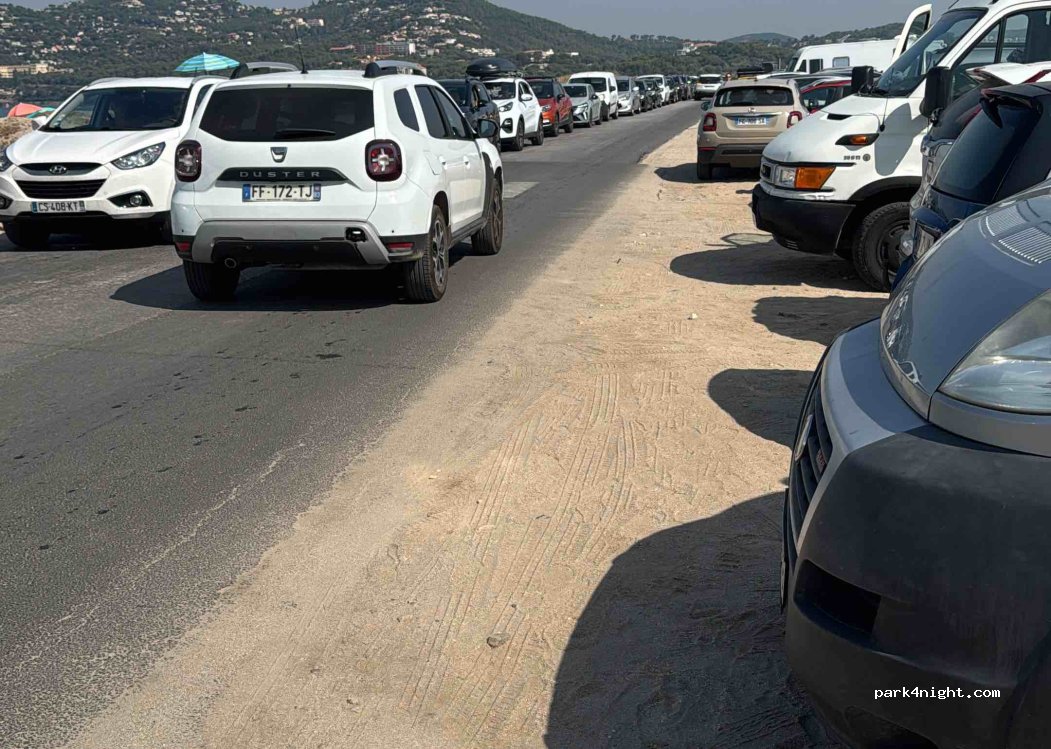 Small car park along Almanarre beach. If you arrive before 10 a.m. you have a better chance of finding a place. The sea is on the other side of the road. Presence of WC at the end of the car park. The sunset is magnificent! A sign prohibits the use of vehicles equipped for sleeping, so parking is only possible during the day, from 6 a.m. to 10 p.m.