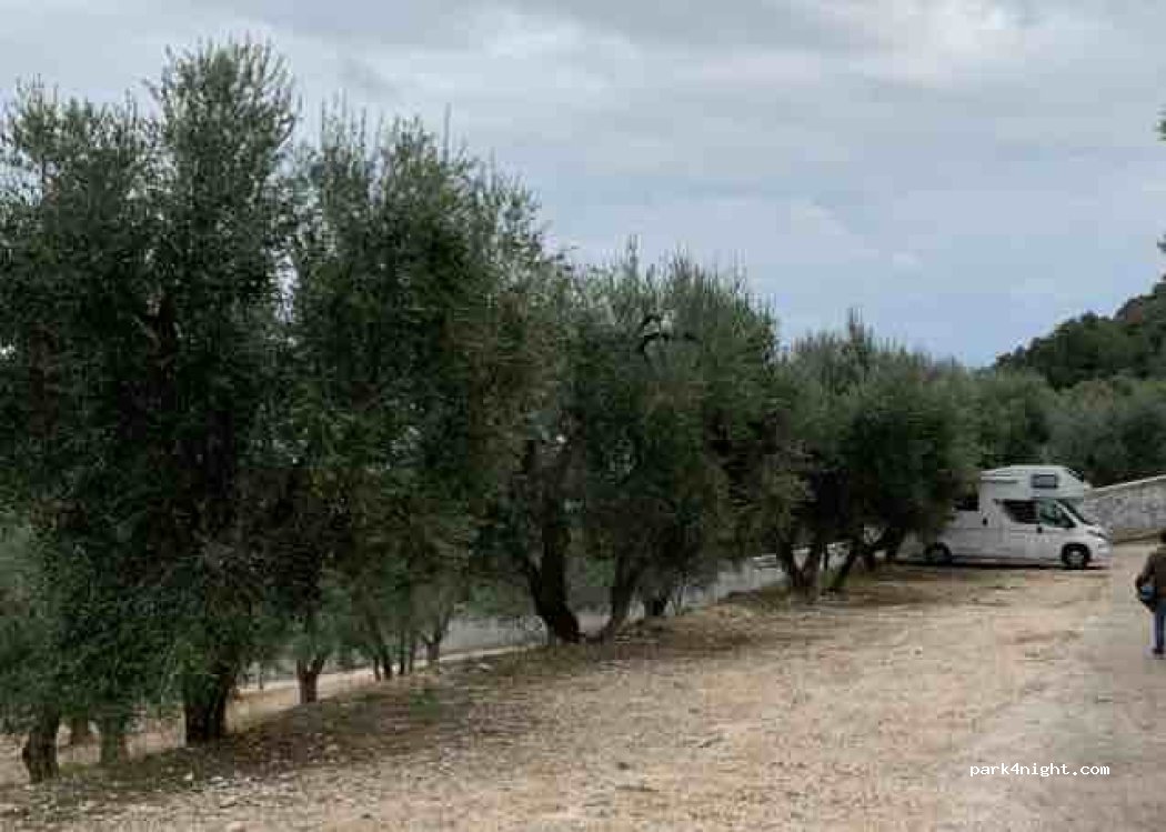 it is possible to sleep outside summer period in the last parking before the stars towards the beach. we spent one night with another camper without problems. trashbins available. one sleeps with the sound of the sea.