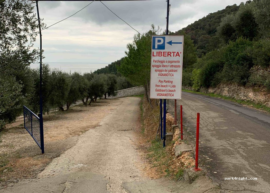 Vignanotica beach parking. If desired, it is possible to stay overnight. 600 meters from the beach, possibly with a shuttle from the Libertà car park