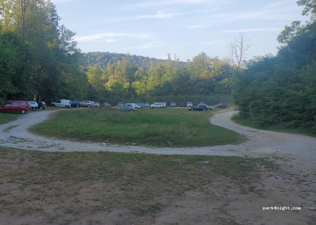 Parking access to the lake Free. many places in the grass about 100 meters from the lake through the forest. You have a paying access to the lake 5€ via the nearby restaurant or FREE by continuing your way to the right of the restaurant. several very nice accesses to the lake. great for swimming and getting away from the heat of Como in the summer. We did not see a sign prohibiting sleeping there. We stayed there in the afternoon. Our dog was able to bathe without problem.
