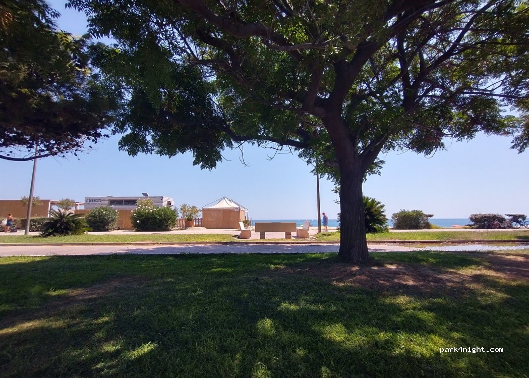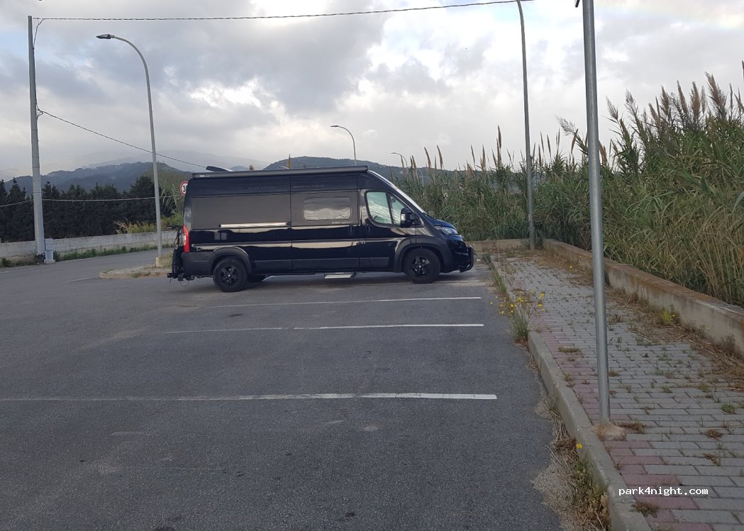 Abbiamo posteggiato in un piazzale asfaltato con stalli dove può sostare anche un camper di mt 6,00. Vicino al mare con doccia sulla spiaggia e acqua sul lungomare pedonale.