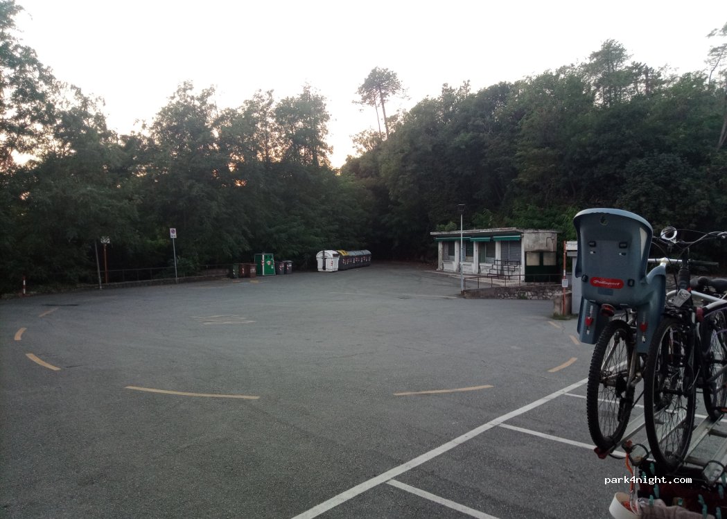 Nice quiet place to visit Genoa or just to have some rest (no highway or train noise as usual along the coast!). There is a parking lot in front of a large cemetery. Buses go very often during the day towards the center directly from the parking lot (last stop). No prohibition signs. According to the bus driver and local employees, standing there is no problem either. Large trash cans on site.