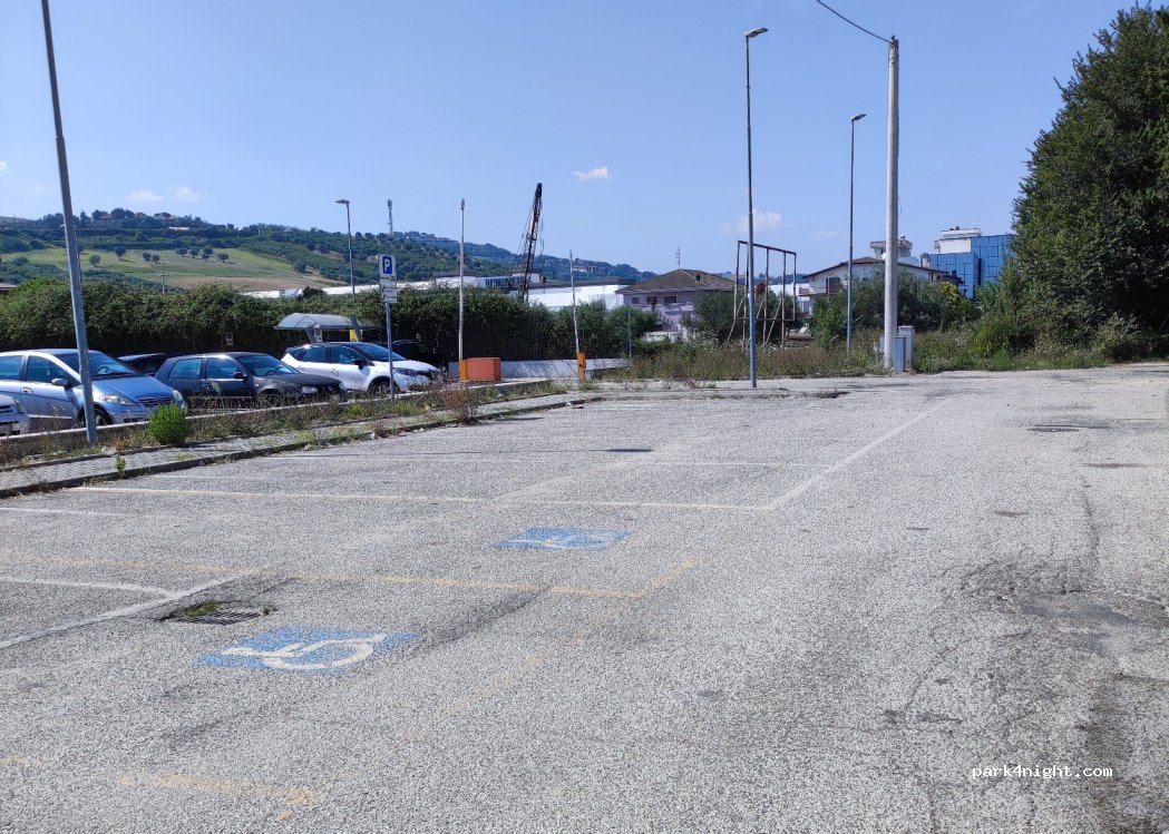 Unico parcheggio ufficiale per camper a Tortoreto Lido, trovato vuoto nella settimana di ferragosto, senza ombra senza servizi, sulla strada principale,forse di notte un po' rumoroso.