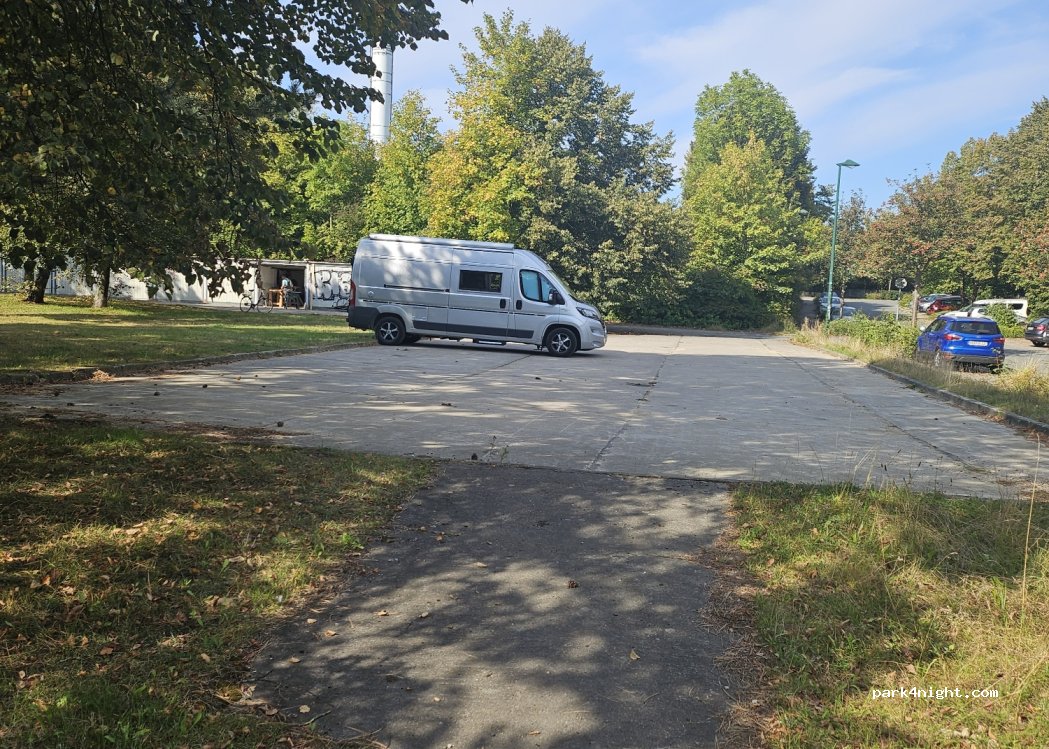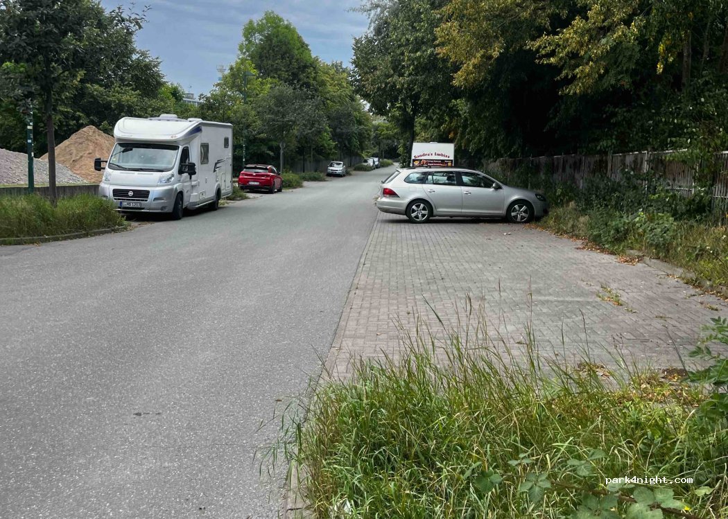 Parken im Wohngebiet. Rundherum stehen Schilder, dass die Parkplätze nur für die Mieter sind. Das ist zwar hier nicht der Fall, aber wir haben uns trotzdem nicht wohl gefühlt und sind weiter gefahren. Mit einem unauffälligen Van vielleicht ok.