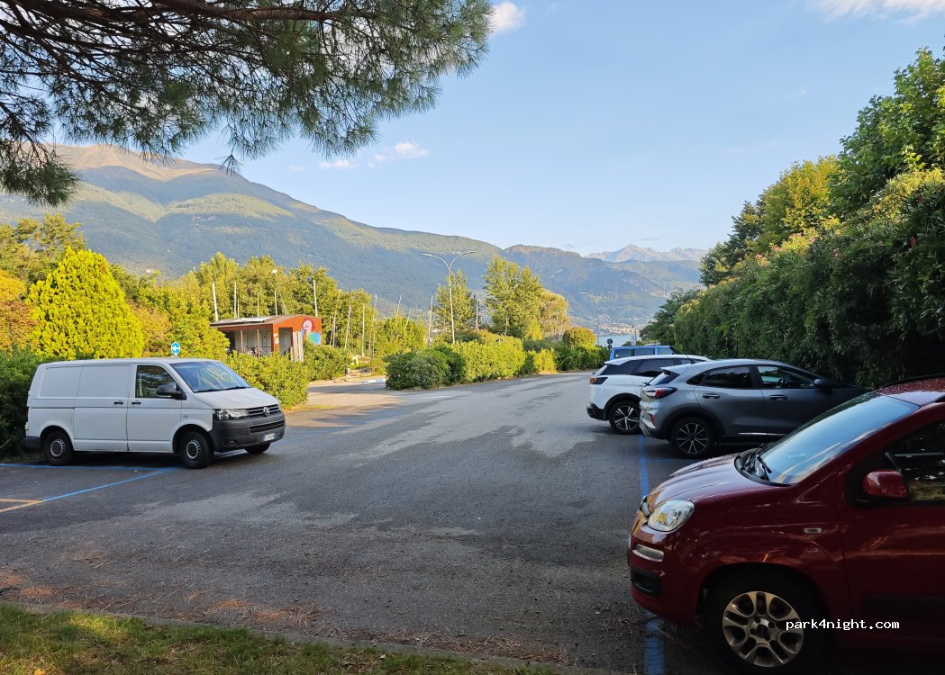 Abbiamo trascorso due notti in questa fantastica località proprio accanto al Lago di Como. Erano disponibili servizi igienici gratuiti e puliti (doccia calda, WC) ca. 300-400 metri da questo punto. Abbiamo fatto anche un delizioso picnic in riva al mare in assoluta tranquillità. Di giorno i parcheggi potevano essere occupati, ma di notte c'erano parecchi posti disponibili. L'unico lato negativo era il rumore di una specie di fabbrica nel quartiere, ma non era poi così fastidioso. Consigliamo questo posto a tutti! PS.: i biglietti per il parcheggio si possono acquistare presso un noleggio surf (visibile dal parcheggio) oppure tramite l'app per il parcheggio, che è una soluzione assolutamente user friendly. Anche nella strada parallela al Lago i furgoni/camper non possono parcheggiare, cosa confermata anche da un agente di polizia.