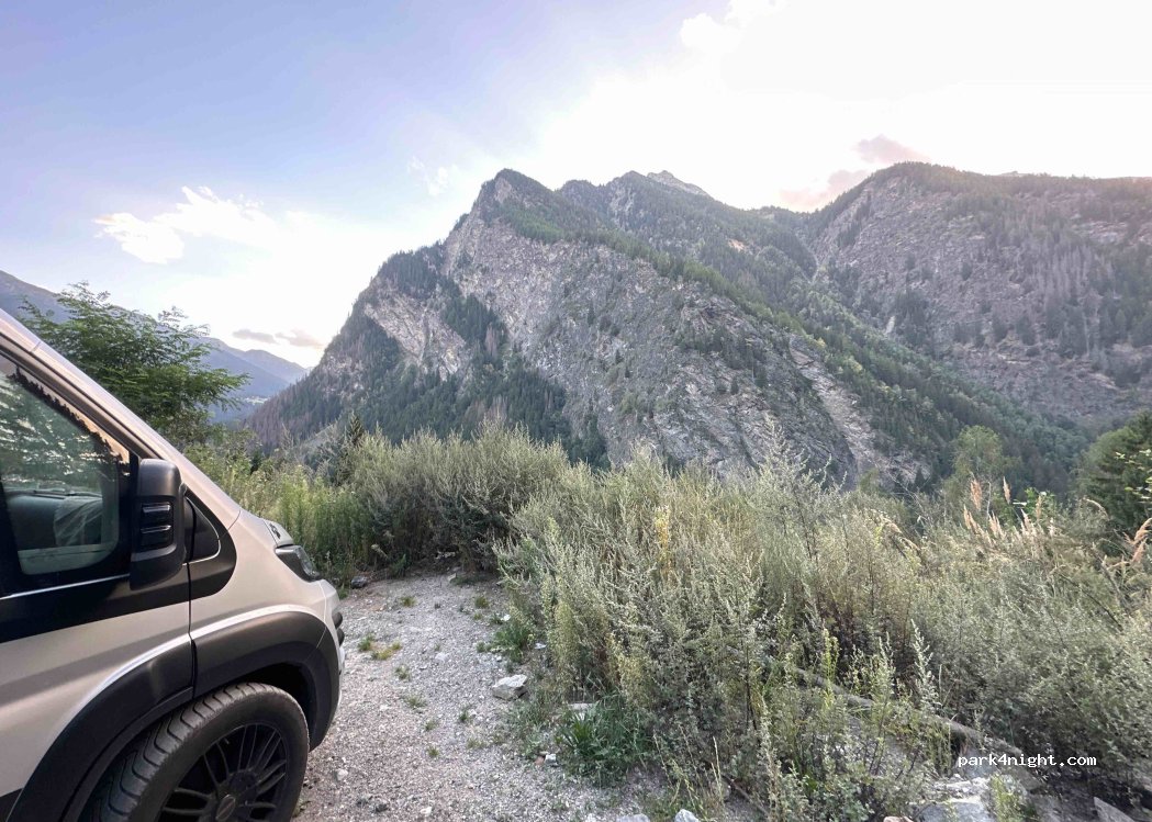 Ottimo spot con una splendida vista dove fermarsi per una notte, terreno pianeggiante e nascosto dalla strada, c’è spazio per 2/3 van. Un po’ rumoroso alla mattina dopo le ore 7.