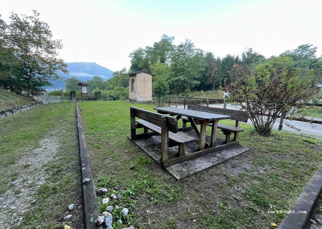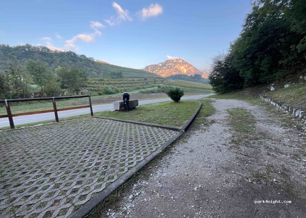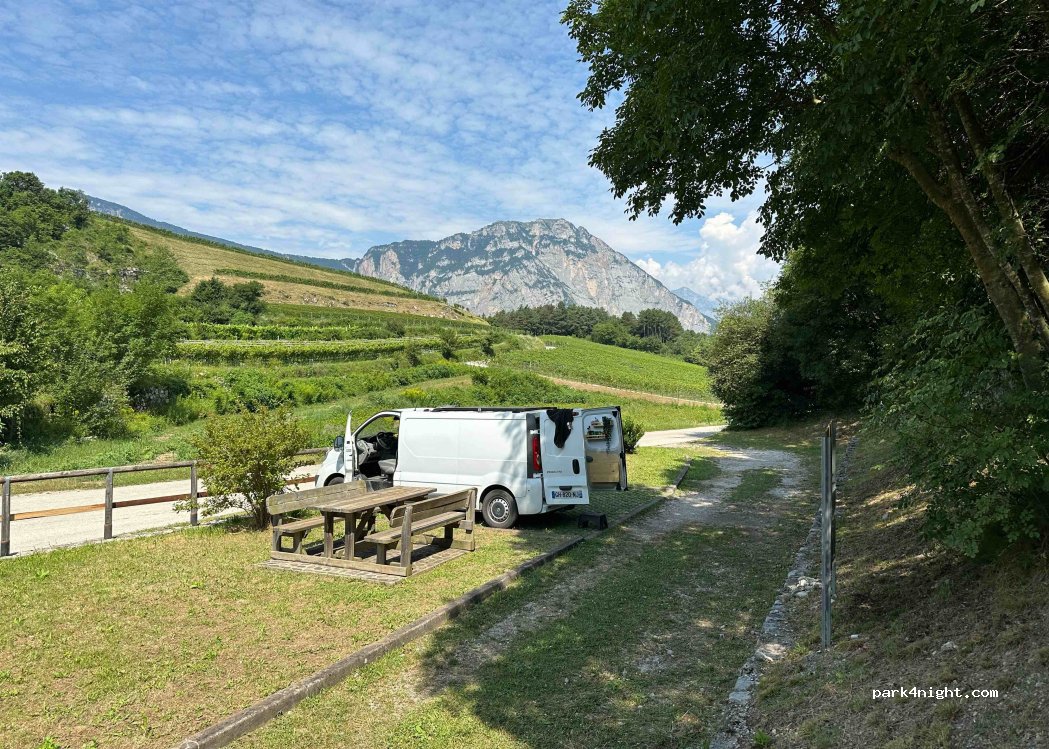 Très bon petit parking deux places, avec fontaine et table de picnic et vue sur les montagnes. Assez calme la nuit, seulement a partir de 7-8h pas mal de voitures passent car il est à proximité du village. De plus le matin nous entendons aussi les cloches du village qui sonnent régulièrement.