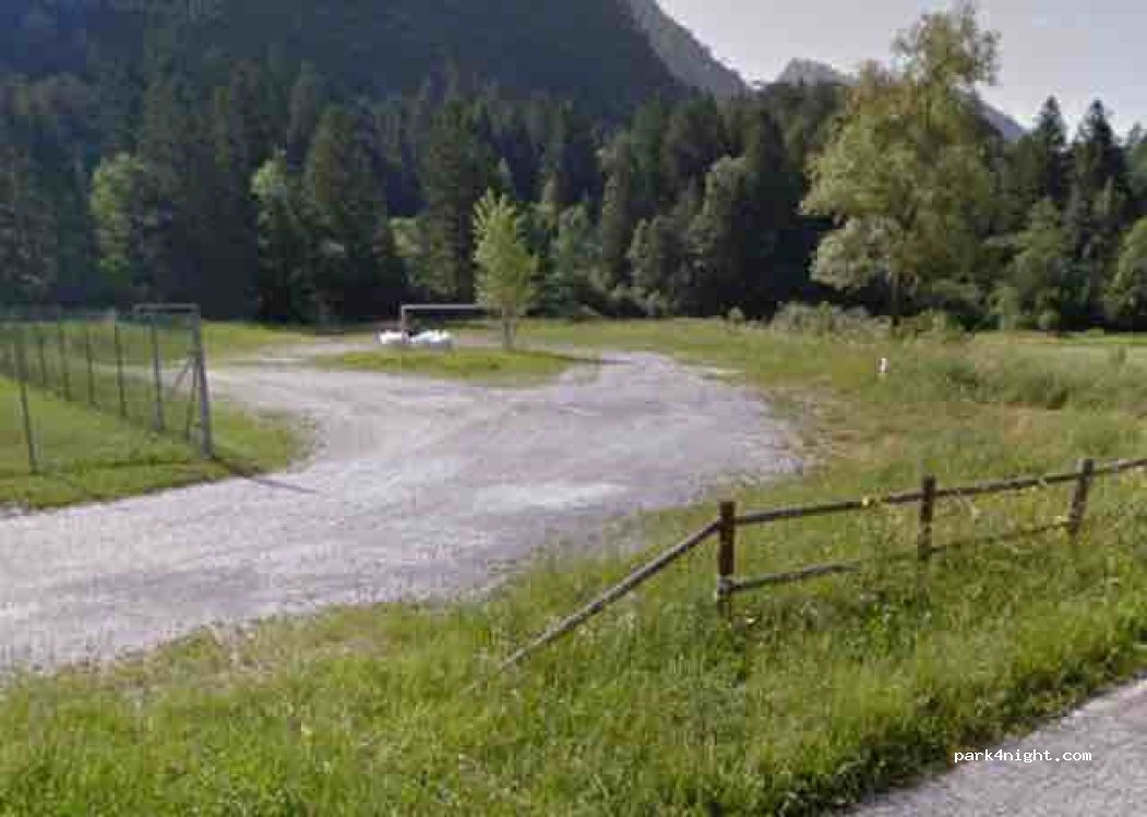 Parcheggio a fondo di un campo da calcio. C’è un bar dall’altra parte e si sentono in lontananza gli schiamazzi ma nulla di fastidioso. Terreno pianeggiante senza alcun servizio. Sei solo nella natura. A Tolmezzo era troppo caldo per dormire. 10 minuti di strada e si sta veramente al fresco.