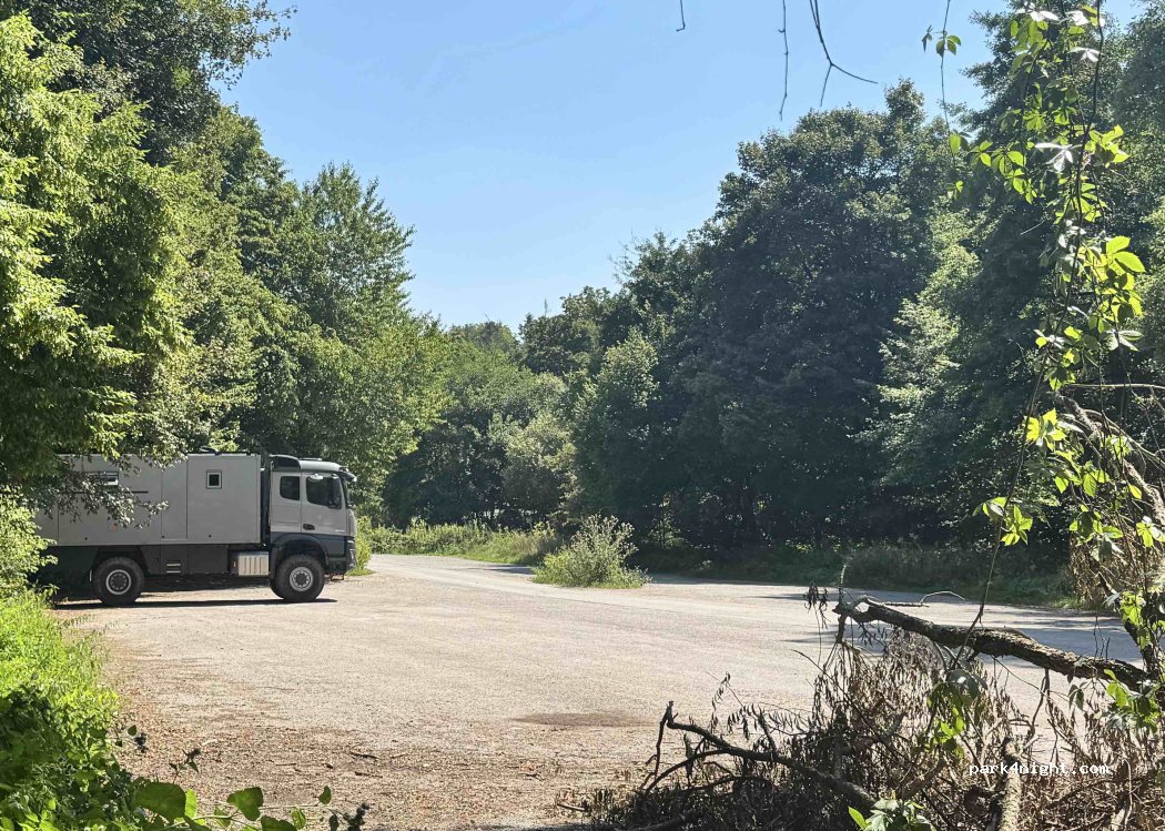 Two free parking lots. Right next to it is a restaurant, fireplaces, an entertainment center for children and the Košice Children's Historic Railway. There are many cycle paths and cycle trails in the vicinity. We parked for 2 nights in the second parking lot, which is farther from the main road. This parking lot was almost empty even during the day. The first parking lot was always full. It was quiet during the day and at night.