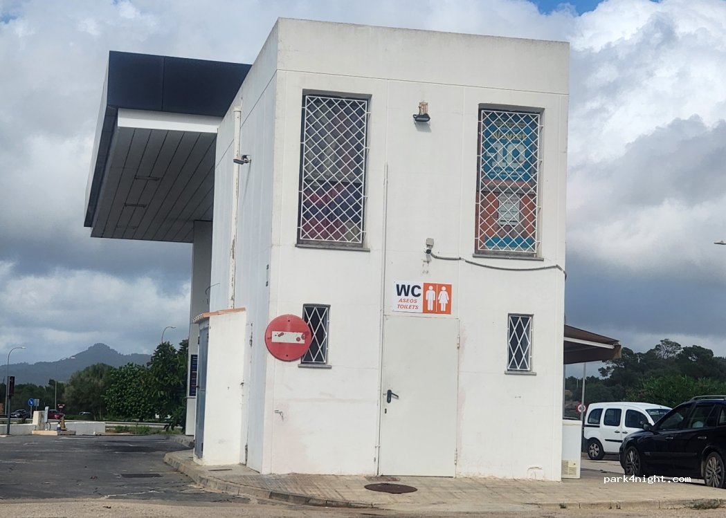 Toilette hinter der Tankstelle. Hier könnte man seine Toilette entleeren sofern man keine Chemie benutzt :)