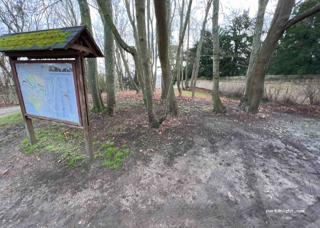 Petit parking en terre et pas droit mais endroit hyper calme. Aucune restriction ni aucun service. Pour passer une nuit c’est idéale