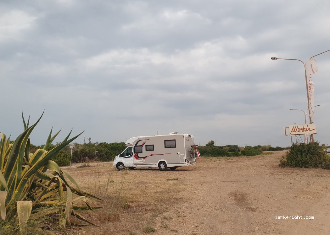 Parcheggio in piena campagna situato vicino a s'archittu. Unica possibilità di sosta in alternativa al bordo strada. All'entrata del paese c'è il divieto d'accesso ai Camper, caravan etc.