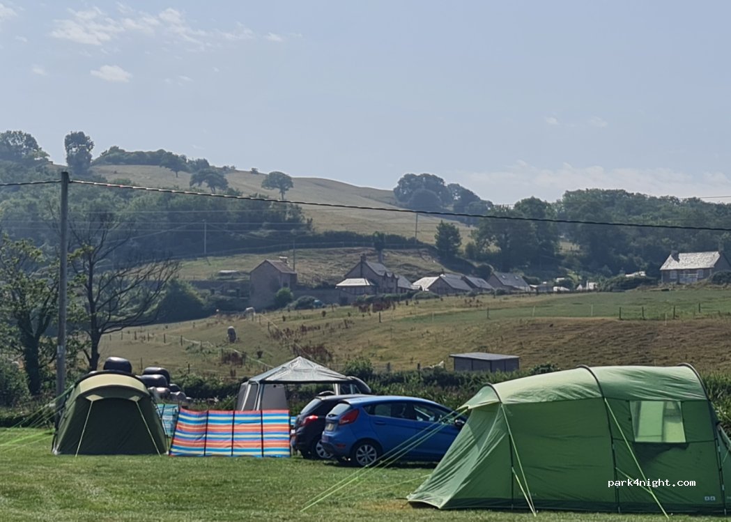 Walking distance to the beach, co-op at the top of the road, on a farm with horses so the smell is apparent, ut if you park far enough away it’s avoidable. Plenty of space, pets allowed, some slants on the fields but many places to chose a level pitch area. Cheap, simple, perfect, close to lovely scenic walks.