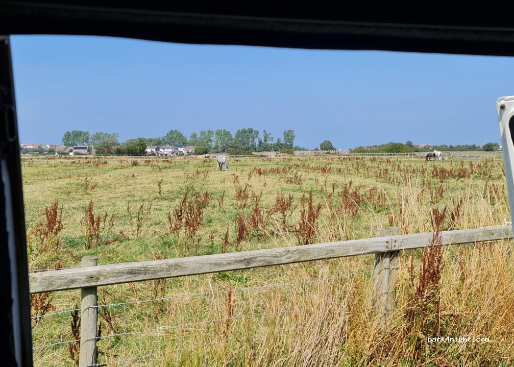 À distance de marche de la plage, coopérative en haut de la route, dans une ferme avec des chevaux donc l'odeur est apparente, mais si vous vous garez assez loin, c'est évitable. Beaucoup d'espace, animaux acceptés, quelques biais sur les champs mais de nombreux endroits pour choisir un emplacement plat. Pas cher, simple, parfait, à proximité de belles promenades pittoresques.