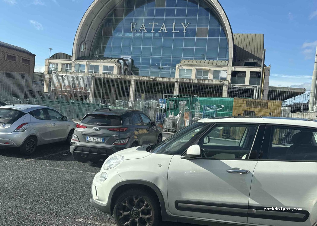 Paid parking of the rail station and shop’s Eataly and Decathlon. Good option if you want to park for some hour. Has security, and bakery and bathroom in front. It’s an alternative stop.