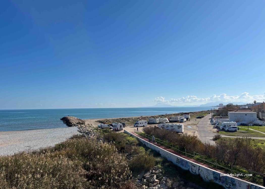 Sitio tranquilo para pasar un dia de playa y pernoctar. Cerca de viviendas pero lejos de comercios y del centro de la ciudad, ideal para pasar un dia tranquilo si vas abastecido de lo que necesietes. Mucho espacio para estacionar, dormimos con 4 autocaravanas mas.