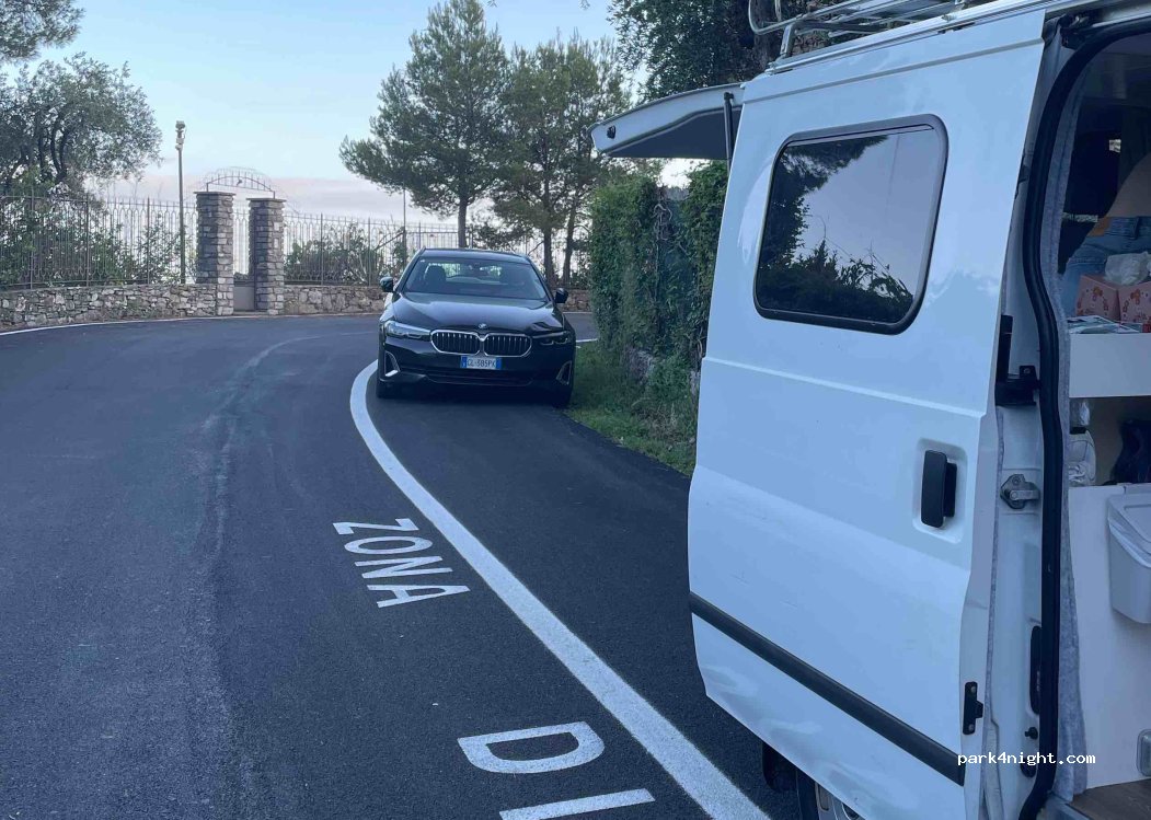 Wir haben hier eine ruhige Nacht verbracht, aber eher da wir in der Gegend von Porto fino nichts gefunden haben. Die Plätze mit weißen Linien sind kostenlos, die meisten sind ziemlich schräg, aber ganz oben kurz vor der Fußgängerzone steht man fast gerade. Sehr nettes Örtchen 10 min entfernt zu Fuß