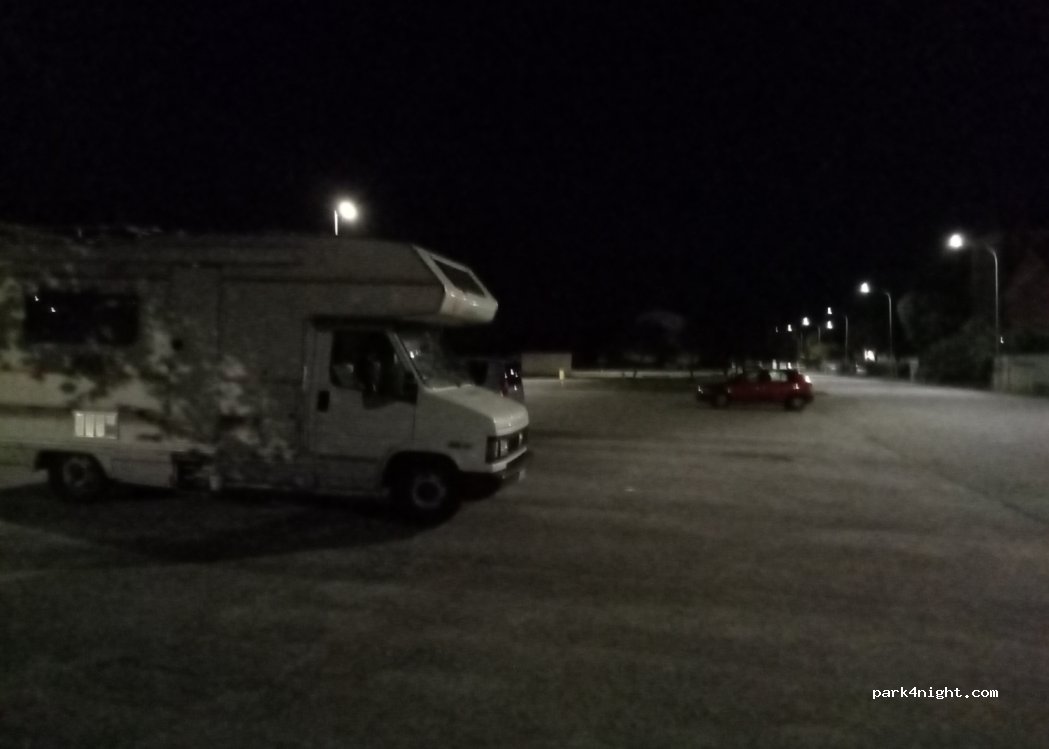 Es un parking para estacionamiento nocturno y diurno, no tiene límite de horario. no puedes acampar. Cerca hay un bar abierto las 24 horas y durante el día hay un supermercado y también un bazar chino. A sólo 2 km también hay un servicio gratuito de carga y descarga de autocaravanas. (cerca de la salida/entrada de la autopista)