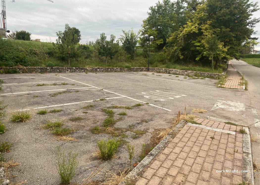 Piccolo Parcheggio per auto in una zona residenziale praticamente deserta. Ci siamo fermati per tre ore di domenica perché non abbiamo trovato da nessun altra parte, però non penso che abbiamo dato fastidio a nessuno. Non credo vada bene per il pernottamento.