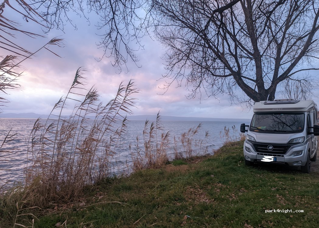 Attention : Google Maps nous a proposé deux chemins en terre pour nous y rendre, un conseil ne vous risquez pas à part avec un 4x4 ! Il faut passer par la ville de Montefiasco pour y accéder sans encombre. Sinon lieu incroyable, calme au bord du lac, on a adoré ! Les locaux sont sympathiques et nous on dit qu’il n’y avait aucun problème à dormir là, par contre interdiction de faire un feu