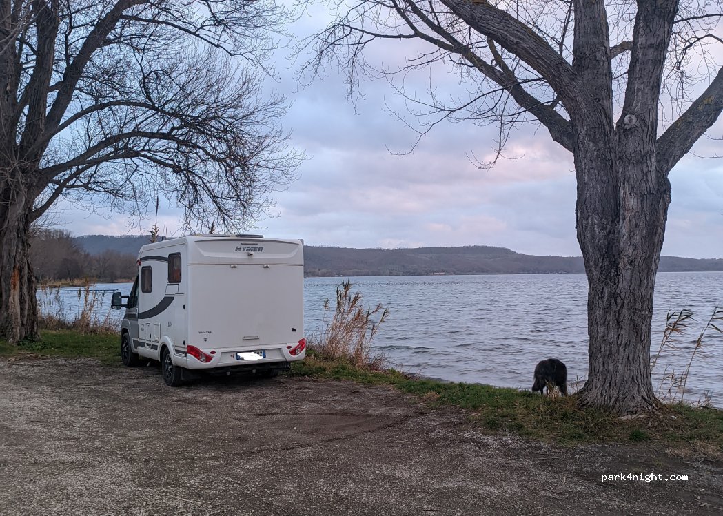 Public car park by the lake, at the end of the road. Very calm. Parking tolerated for small vehicles overnight.