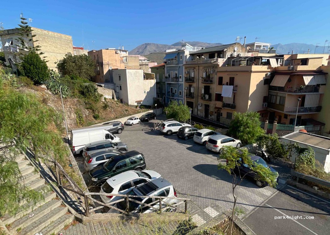 Parking on two levels, more spaces in the upper part of the car park. It is a parking lot where people from the street and surrounding areas park. One night here on a Sunday evening no disturbances, it's safe, calm. Lots of cats walking around.