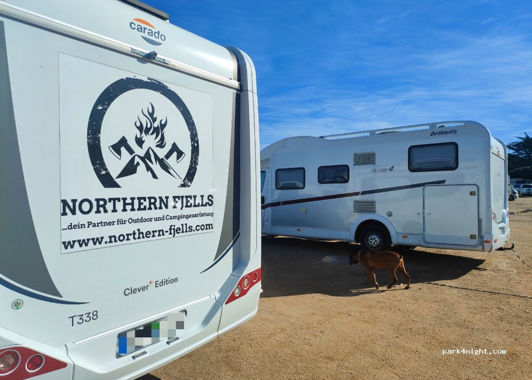 Geeignet als Tagesparkplatz mit schönem Strand und 5 min in die Stadt. Die Übernachtung habe ich aus Sicherheitsgründen gegen 00.30 Uhr abgebrochen, da 4 Jugendliche mit einem alten Renault und kaputtem Auspuff sich gegenseitig das Driften über den Kiesplatz beigebracht haben. Völlig enthemmt durch Alkohol oder sonstigem. Jede Kreisrunde über den ganzen Platz war nahe an einer Kollision.