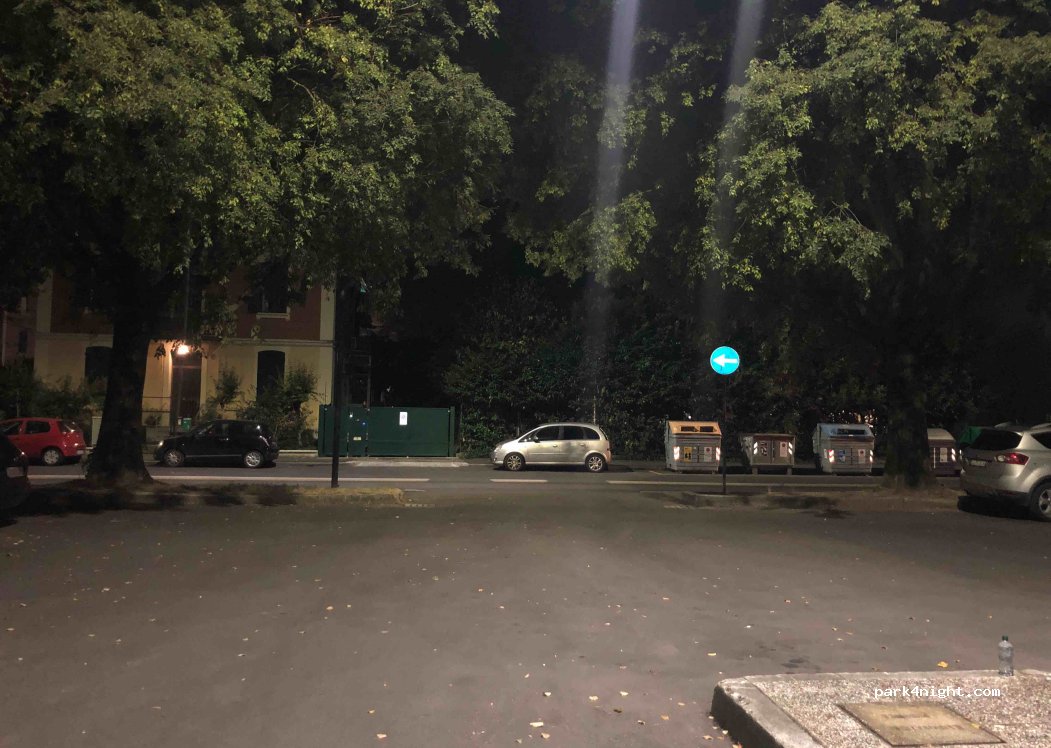 Parking avec lumière centrale. Les avions sont bruyants. Rue à portée de voix. Alternative puisque la Zone Sosta est pleine. Des conditions donc similaires à celles quelques centaines de mètres plus loin. Je ne resterais pas ici pendant la journée. Aucun panneau d'interdiction. Poubelles publiques en face.