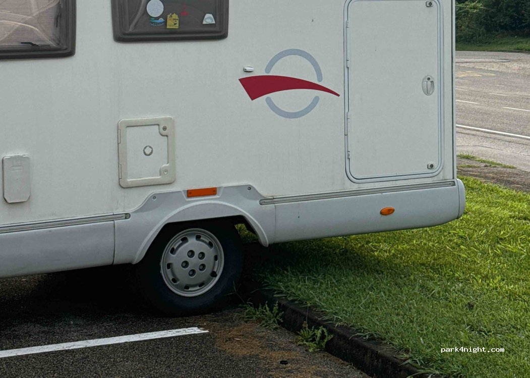Pasamos una noche muy tranquila. Zona alejada de cualquier carretera con tráfico. Se oye pasar un tren de vez en cuando, pero nada molesto. Las plazas son pequeñas, para coches, pero aparcando de culo en la zona de jardín sin setos, queda bien.