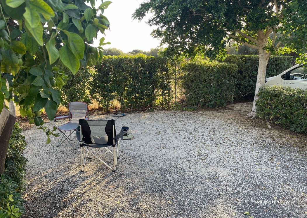 Sehr schöner gepflegter Platz mit großen Parzellen unter Zitronenbäumen. Sanitäranlagen etwas schlicht aber sauber. Hundespäziergänge etwas schwierig, da der Platz inmitten anderer Häuser mit Gärten liegt, aber machbar. Besonders hervorzuheben ist die freundliche junge Dame an der Rezeption.