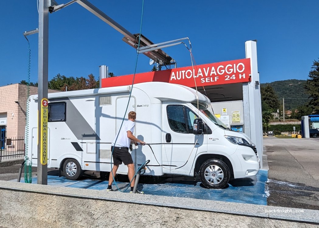 Ci siamo fermati qui per lavare il nostro camper (self-service). C'è un punto di lavaggio per camper. Perfetto!