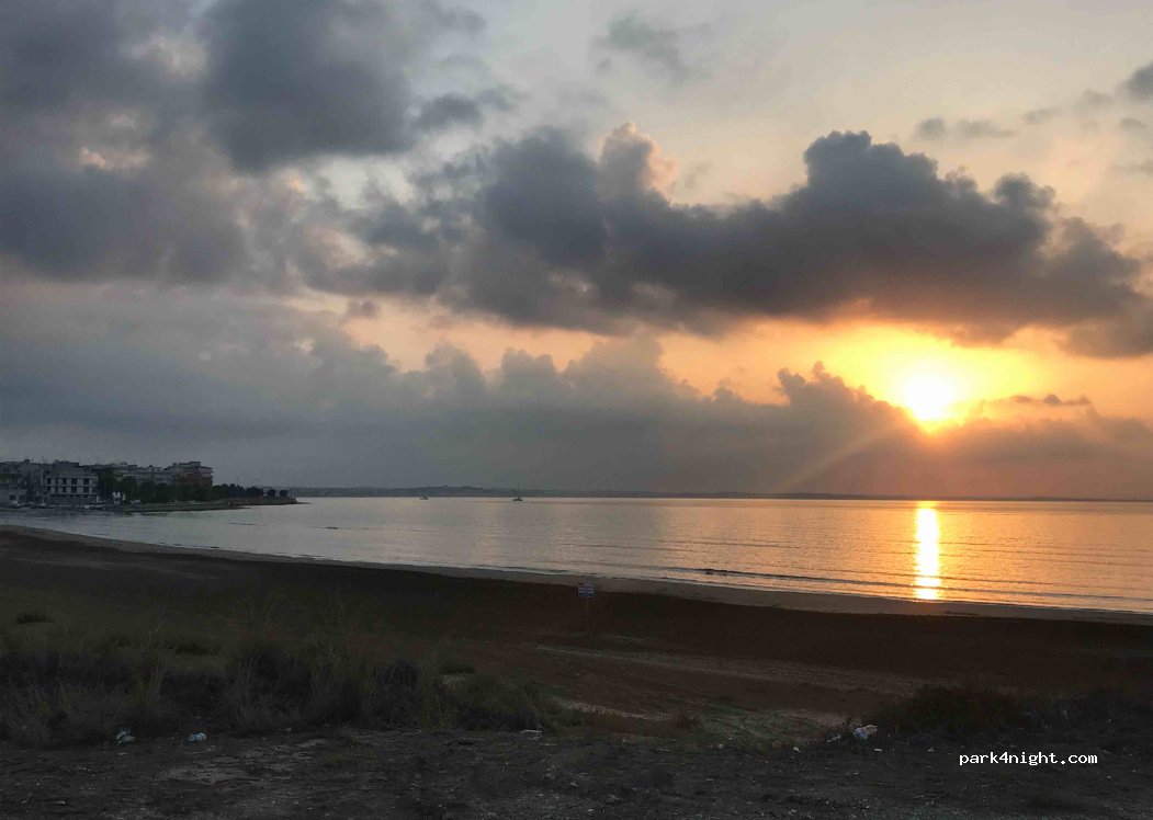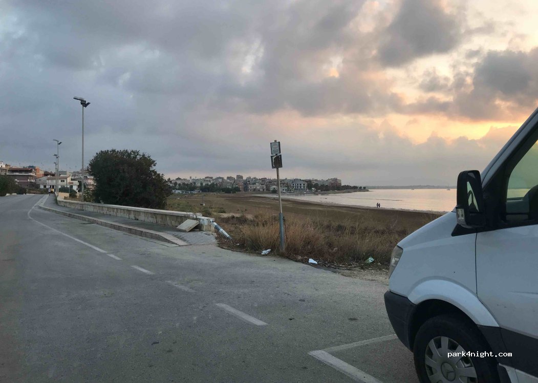 Nicht zu verwechseln mit dem großen Platz ganz am Ende der Straße (nahe dem Containerhafen an der Viale Medaglie d’Oro Lunga Navigazione), wo Parken strengstens verboten ist; wir kamen dort am späten Abend des 17. Januar 2026 an und haben ihn verpasst. Am nächsten Morgen um 6:30 Uhr wussten wir, warum: Die Lkw parkten zu dritt nebeneinander neben uns und warteten auf die Abfahrt zum Containerhafen.