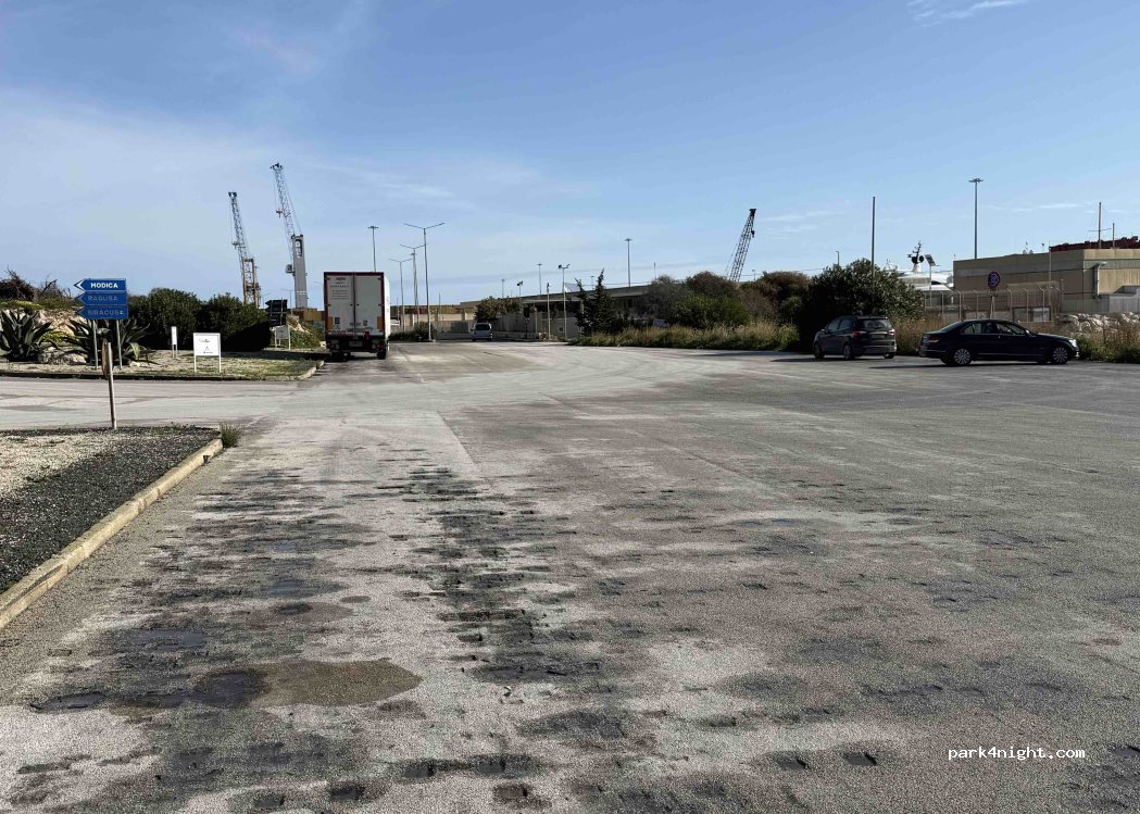 Da non confondere con il grande piazzale in fondo alla strada (vicino al porto container su Viale Medaglie d'Oro Lunga Navigazione), dove è severamente vietato parcheggiare; ci siamo arrivati la sera tardi del 17 gennaio 2026 e non l'abbiamo visto. La mattina dopo, alle 6:30, abbiamo capito il perché: i camion erano parcheggiati tre di fila accanto a noi, in attesa di raggiungere il porto container.