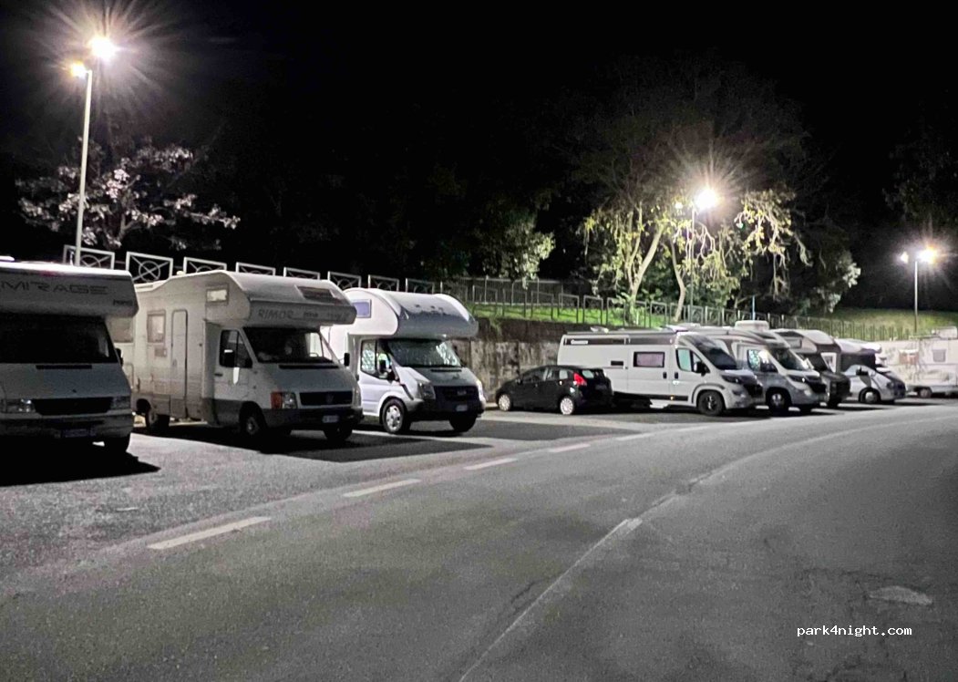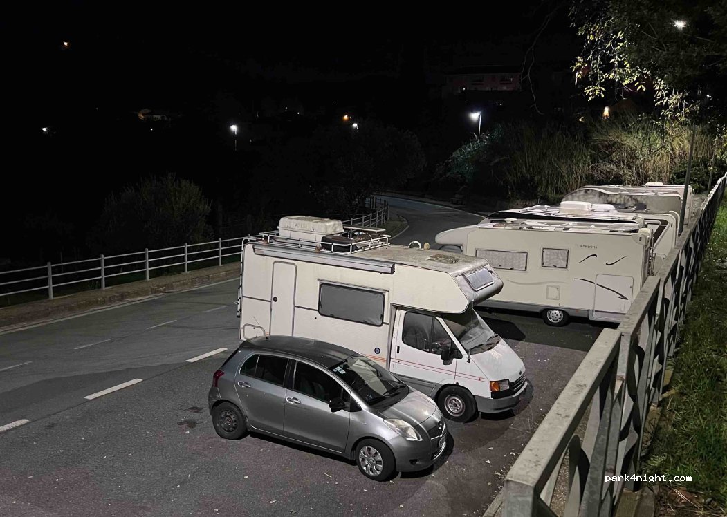 Parking pouvant accueillir jusqu'à 15 mobil-homes. Directement sur la rue et un peu en biais. Mais gratuitement. Il y a aussi un grand parking à quelques mètres en bas de la rue.