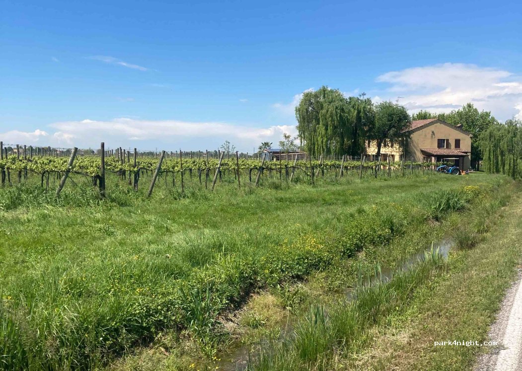 L’azienda agricola è composta da un vigneto, prati per foraggi, campi coltivati a cereali e vanta anche la presenza di una piccola cantina. Lo spazio a disposizione per la sosta dei camper è ampio, all'interno di un vigneto pianeggiante con fondo in erba. Non sono presenti servizi (né WC, né corrente elettrica). Trattandosi di proprietà privata, è necessario chiedere disponibilità almeno tre-quattro ore prima dell’arrivo con messaggio whatsapp, telefonata o email.