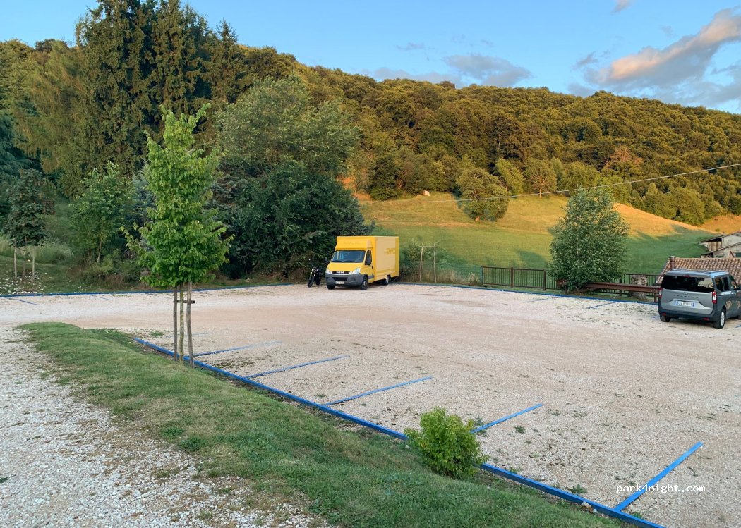 Grand parking directement au téléphérique, bons voyages au Monte Baldo possibles, places de parking également pour les véhicules de 7 m, aucune restriction sur les types de véhicules, pas d'interdiction de passer la nuit.