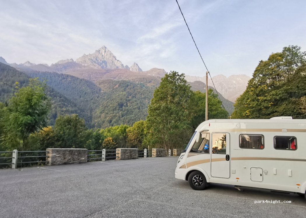 Parking gratuit adjacent au sanctuaire de San Chiaffredo di Crissolo. Zone en pente avec suffisamment d'espace pour manœuvrer avec des camping-cars de 7 m. Au Sanctuaire, il y a des toilettes publiques qui sont mal gérées. Excellent point de départ pour une courte randonnée sur le chemin des âmes vers le hameau caractéristique de Borgo di Crissolo.
