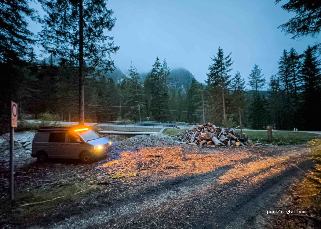 Kleiner Stellplatz vor einem Forstweg, Platz für evtl. 2 Transporter. Nachts kaum Verkehr, etwas durch Vegetation geschützt. Das Rauschen des Flusses ist recht laut aber für uns nicht störend. Wir hatten kein Netz. Die normalen Zufahrtsbeschränkungen für die Region sollte man sich ansehen, wir waren außerhalb der Saison dort.