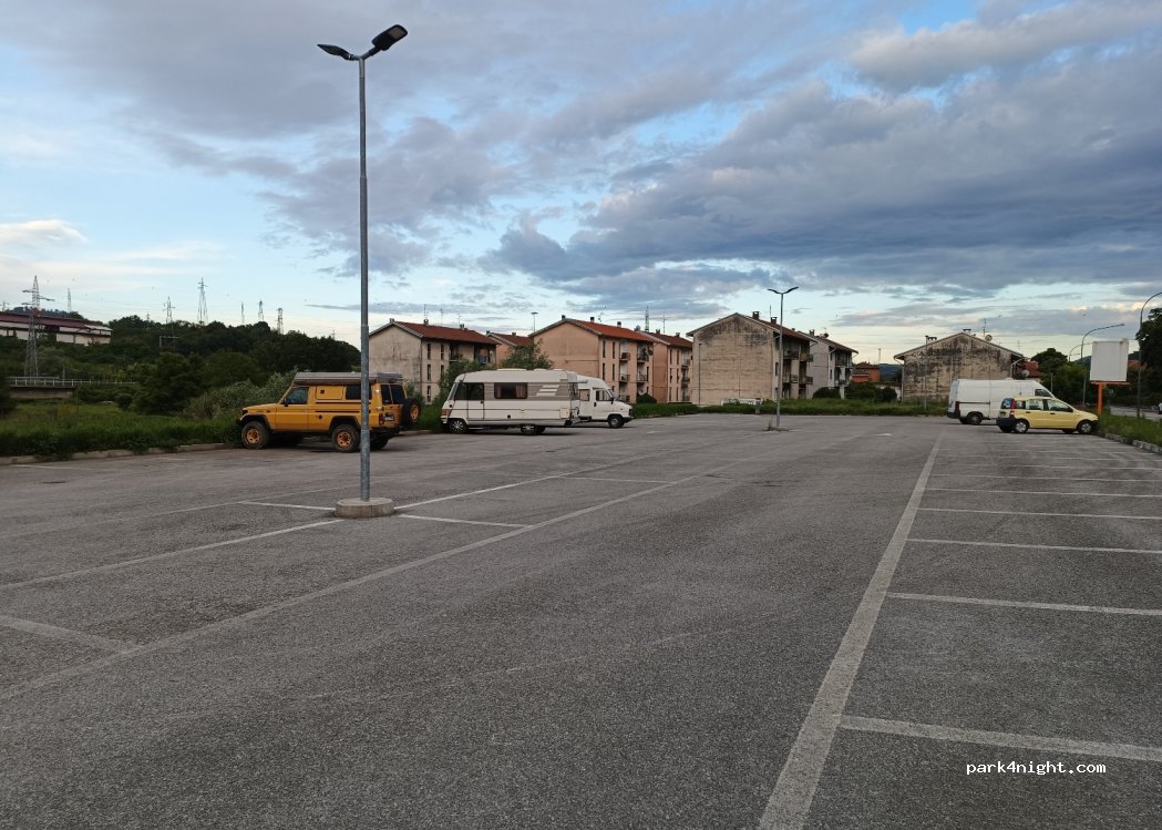 un po lontano dal centro ma tranquillo la notte, le campane non disturbano molto. se le piazzole camper sono occupate si può sostare sulle molte libere per le vetture.