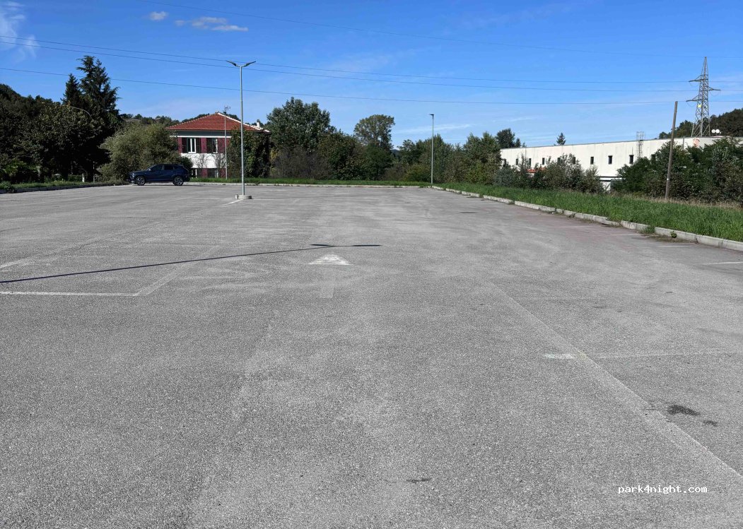 nous avons passés une nuit tranquille, les cloches sonnent à minuit et le matin à huit heures...nous avons eu de l'électricité payante, de 17h00 à minuit pour 2.5euro ...il y a de l'eau...vidange des eaux grises...il y a beaucoup de place même pour grand CC...le mien 7.80 +remorque scooter...il y deux résidents Italiens... merci a la municipalité...