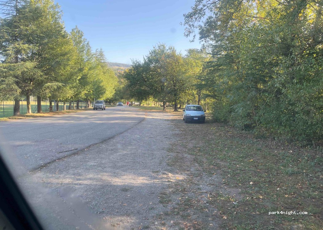 Zona adiacente al campo sportivo, pianeggiante e alberata. Attenzione accesso solo a veicoli di piccole dimensioni a causa del sottopassaggio stretto (altezza massima 2 metri!). Fermati per una notte molto tranquilla con il ruscello accanto a te. La strada è l'accesso al ristorante La Capannina.