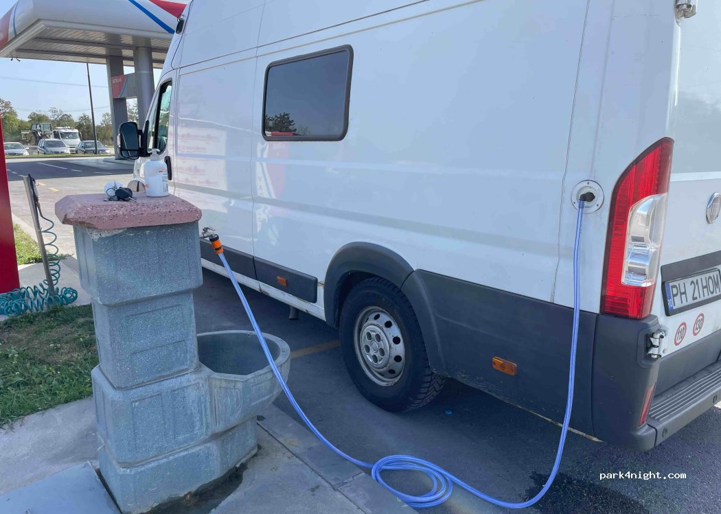 Station service avec fontaine à eau