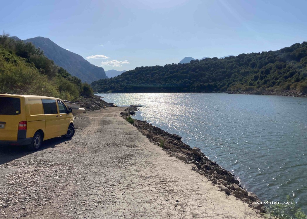Nice spot at Lago del Cedrino at the water of the lake. 3-4 spots possible.