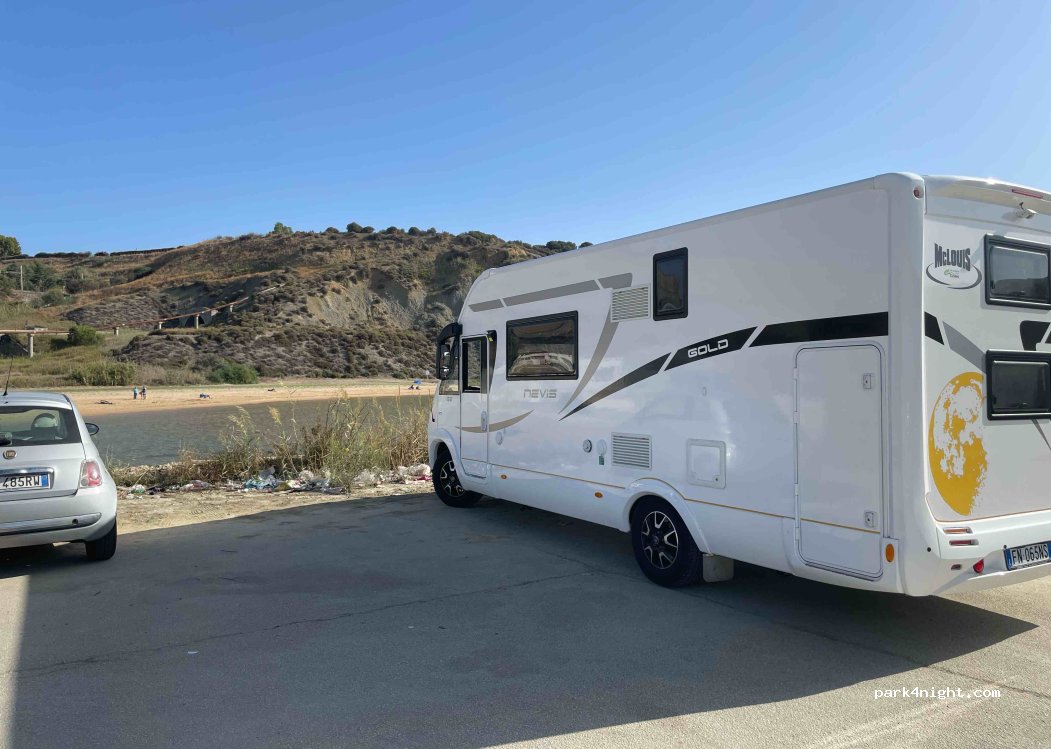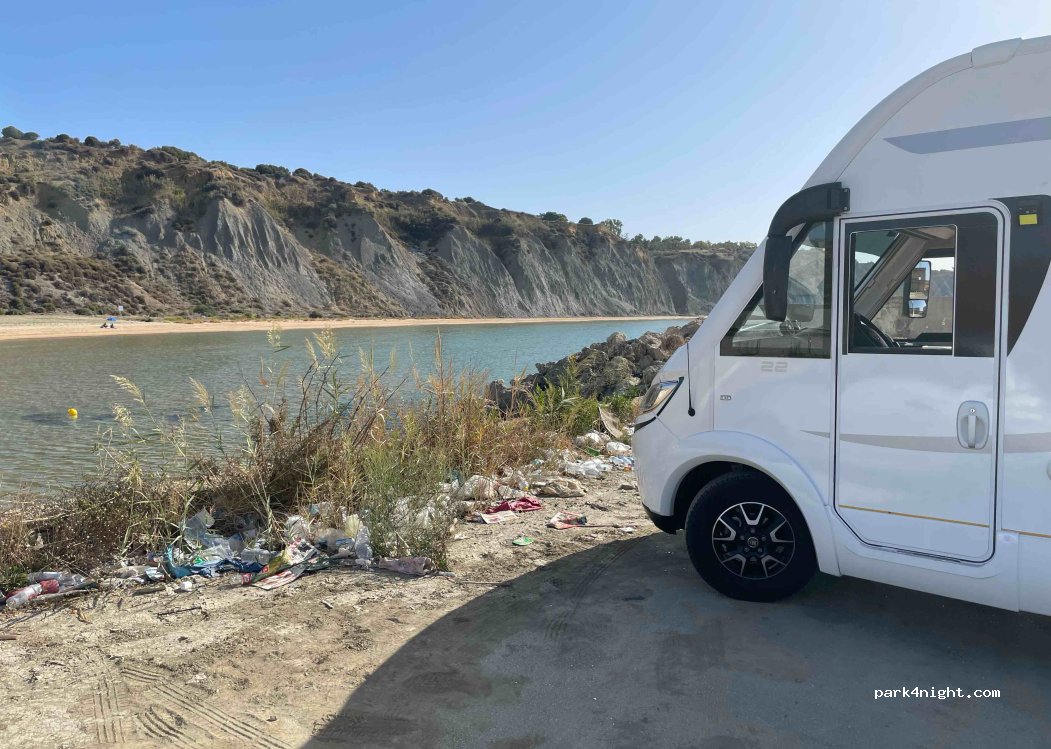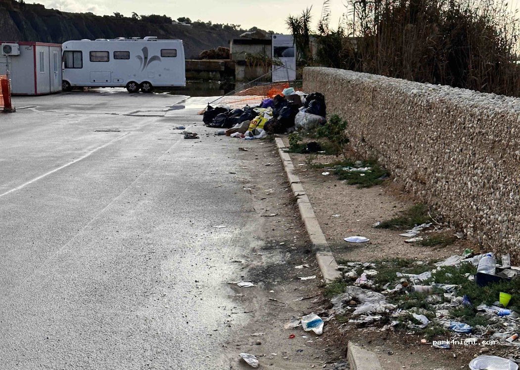 Endroit calme pour passer la nuit, sauf le karaoké dans le bar à côté. Petite plage agréable. Pas de limite de hauteur ni de longueur. Beaucoup de détritus, comme de coutume en Sicile.