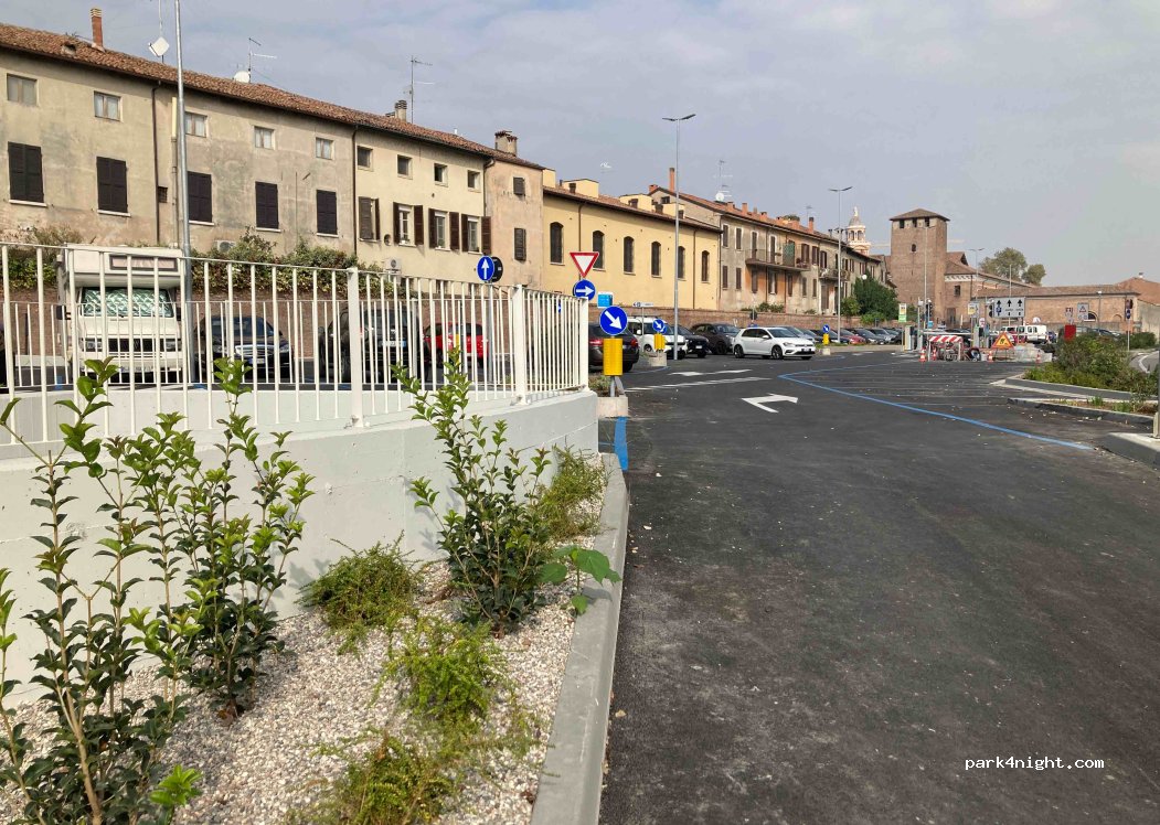 Parcheggio di nuova creazione per veicoli più piccoli. Ho potuto parcheggiare bene con un camper di 5,40 m. Se si vuole rischiare di utilizzare due posti auto, 7m vanno sicuramente bene. Ottima posizione per visitare la città.