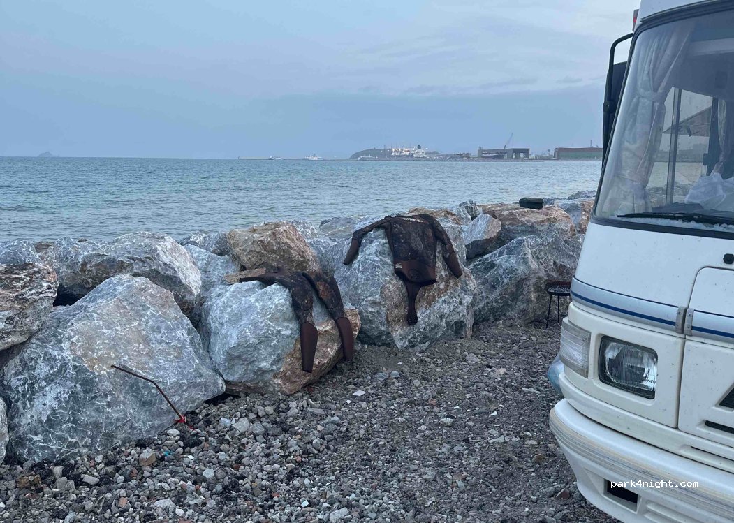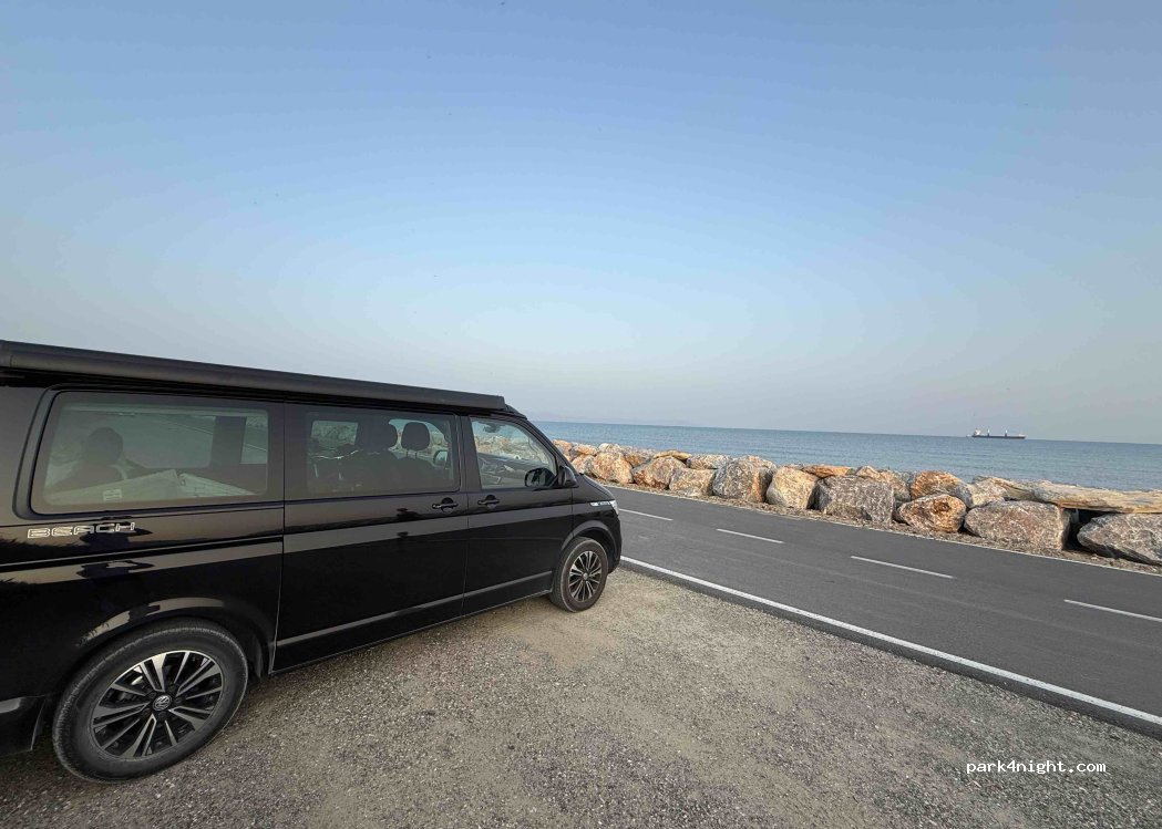 Notte tranquilla a bordo di una strada chiusa che porta ad una fabbrica (poco trafficata). Vista sul mare e presenza di altri camperisti del posto molto tranquilli. La spiaggia vicino è libera, con fondale basso, e adatta a tutti!