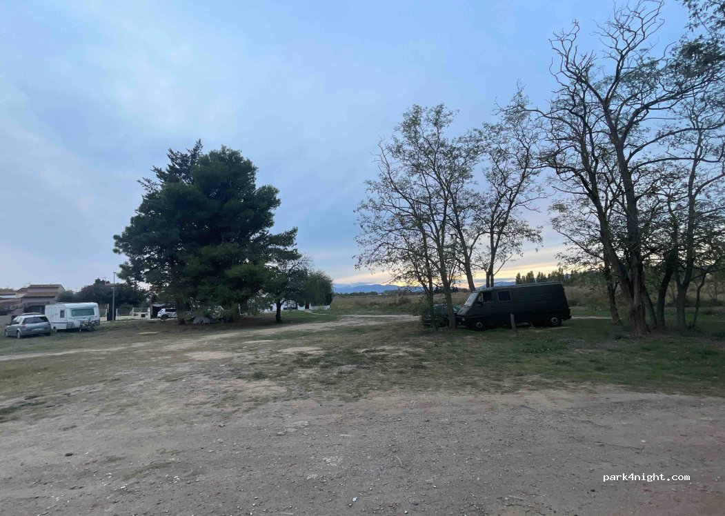 Lieu calme vers 23h un vendredi soir et la circulation reprend le matin. Grand espace pour se garer. De l'ombre grâce aux arbres. Les locaux on l'air de nous accepter. Top pour un parking en ville pour une nuit.